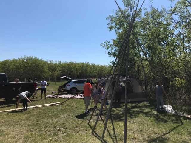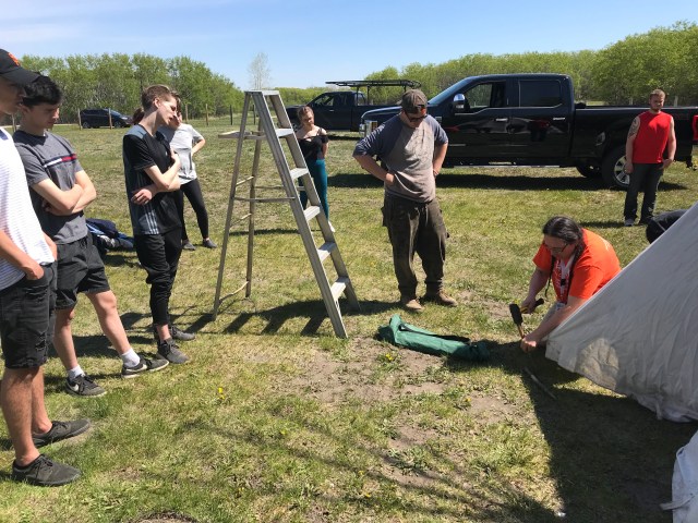 The camp took place at Echo Valley Provincial Park in the Qu’appelle Valley. The students were able to experience and participate in a number of activities that focused on Indigenous knowledge, teachings, and traditional practices. While there, students were able to learn about the tipi and how to set up their own. They also learned about traditional mens and women’s roles.