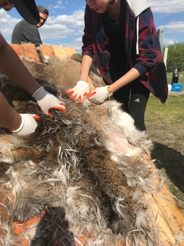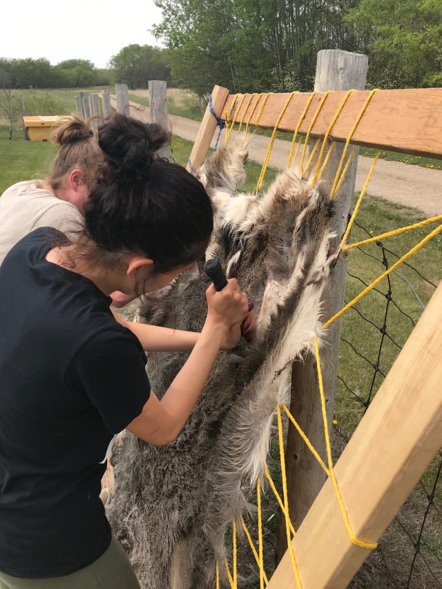 Students also had a chance to flesh and dehair deer hides. We were able to teach them the process and they got hands on experience doing the work themselves.